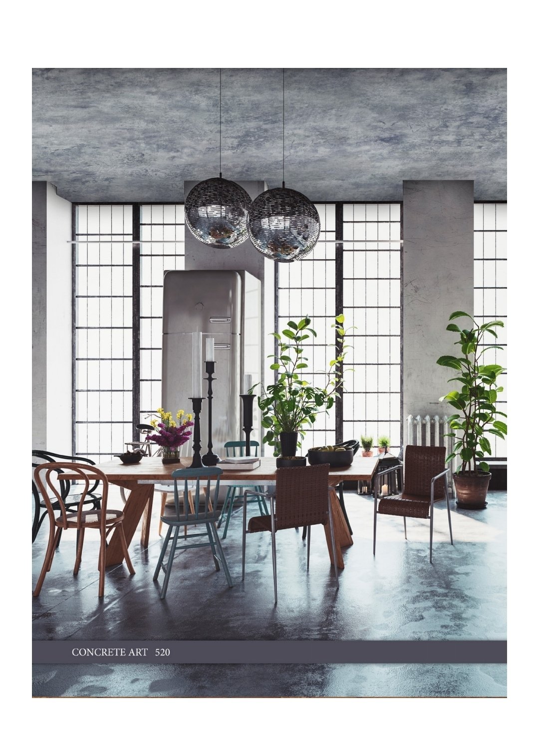 Современная эстетика — реалистичная имитация бетона от светло-серого до насыщенного антрацита гармонично сочетается с кирпичом, деревом, стеклом и другими материалами. Это удачный пример оформления потолков в интерьерах в стиле лофт, индустриальный, минимализм.